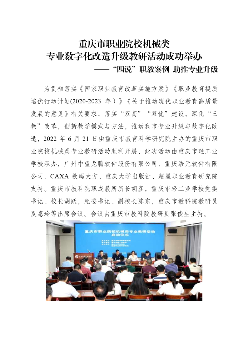重庆市职业院校机械类专业数字化改造升级教研活动成功举办——“四说”职教案例 助推专业升级